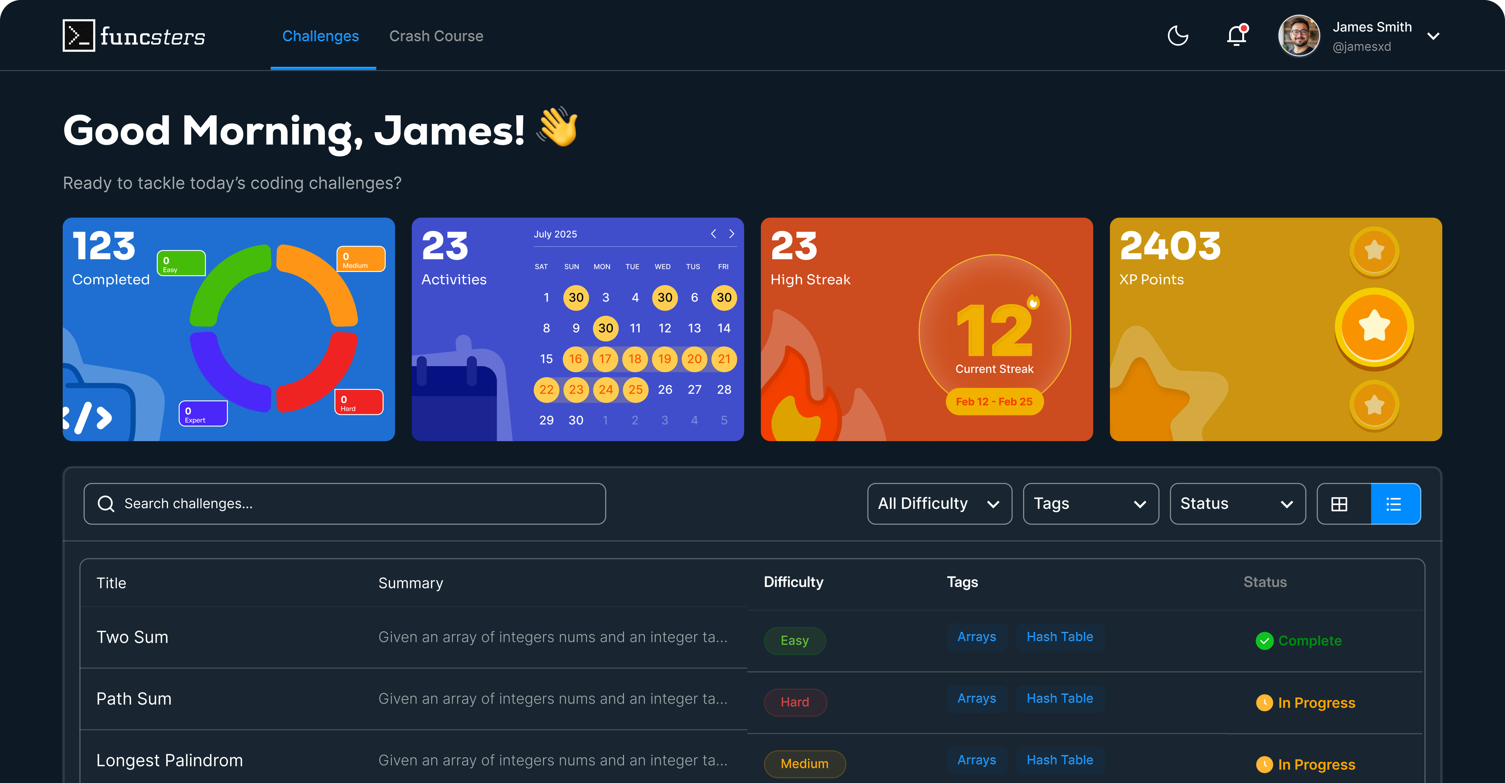 Take on real coding challenges, sharpen your logic, and build the skills to level up — one solution at a time.